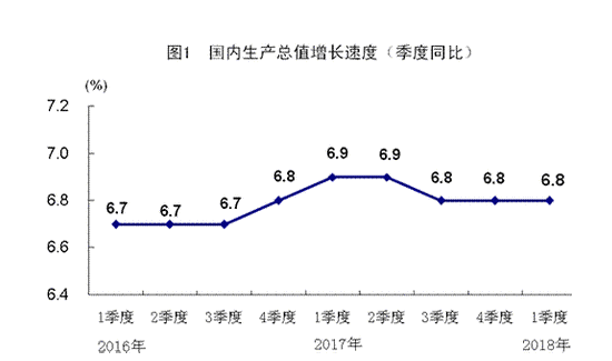 2017年各季度及2018年一季度GDP环比增速分别为1.5%、1.8%、1.8%、1.6%和1.4%。
