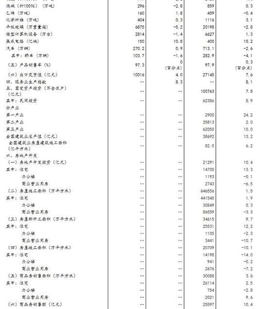 国内生产总值、规模以上工业增加值及其分类项目增长速度均按可比价计算;全国及分城乡居民人均可支配收入和人均消费支出增速为实际增长速度,全国居民人均可支配收入分项增速、中位数增速为名义增速;其他指标增长速度均按现价计算。